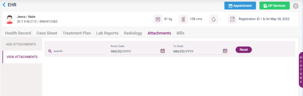 View attachments- The user will be able to view the uploaded attachments in this section. Also the files can be searched by date and name.