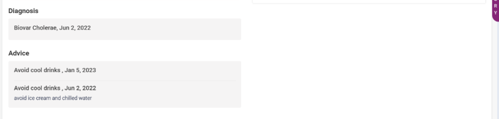 - Advice- Advice provided for the patient by the physician in the case sheet will be displayed here.
