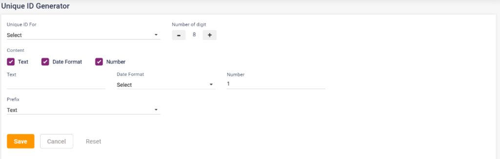 - Content: The select the template for the ID text, date format and number. According to the selected context type the text, date format and number in the respective fields.