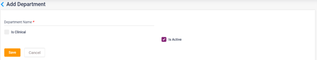 - Select the “Is Clinical” check box if the department is a clinical department.