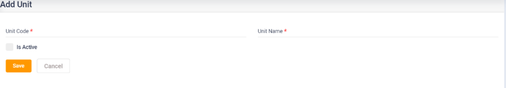 - Is Active: Select the Is active check box for showing the unit in the modules. If you uncheck this unit will not be available in the list.