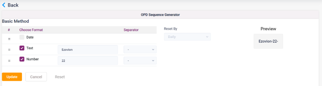 - OPD Sequence generator: This set up needs to be configured to generate the token number for the patients.