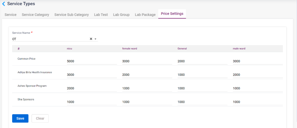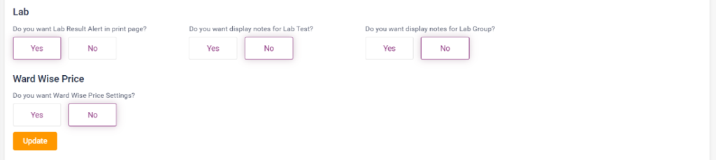- Ward wise price settings: Select yes to show the ward wise price details.