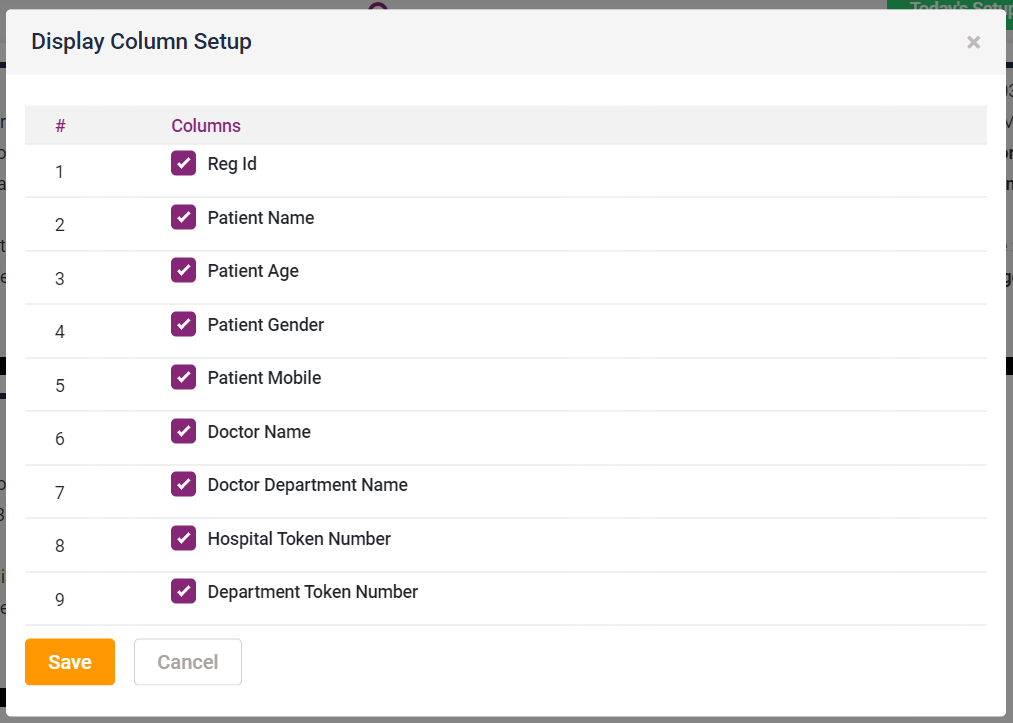 - OPD monitor set up: The monitor set up for each doctor or each department can be set up here.
