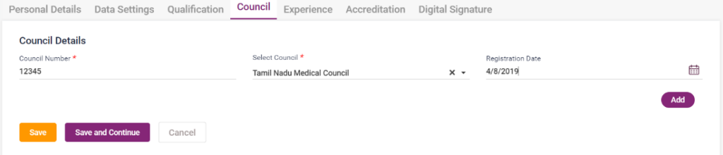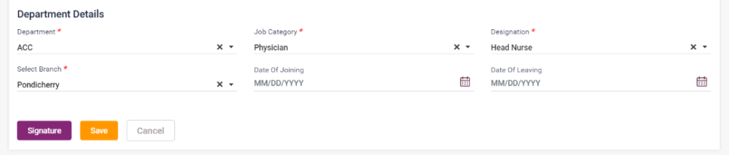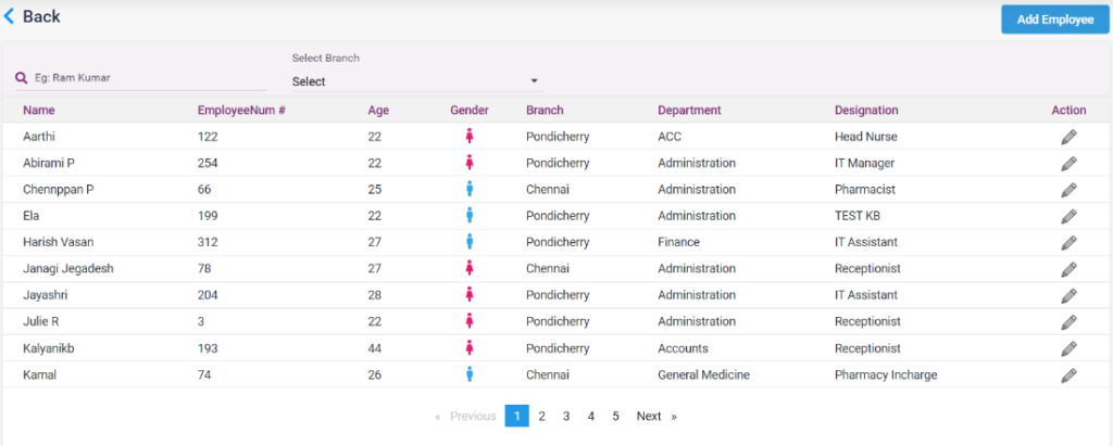 - Click on “Save” button. The added departments can be edited using the edit icon.