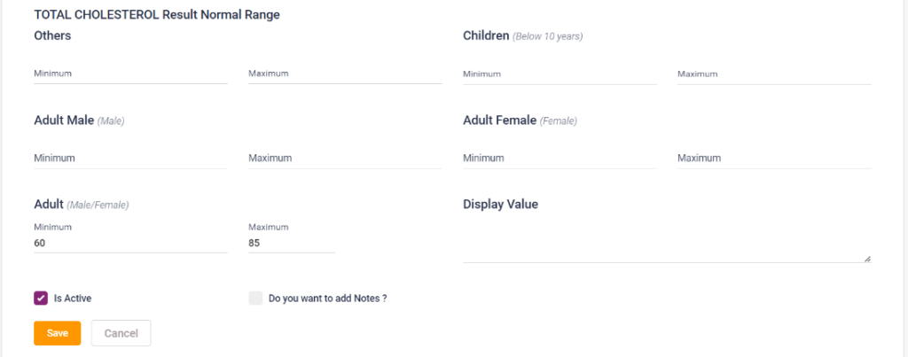 - Display notes in lab test: select yes to display the notes field in the lab test service page.