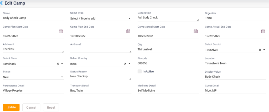 - Click on the page details tab, the default fields will be given below. These fields can be added, modified deleted and edited.