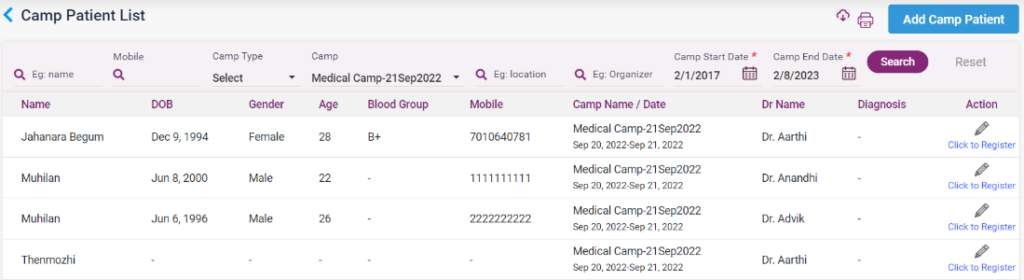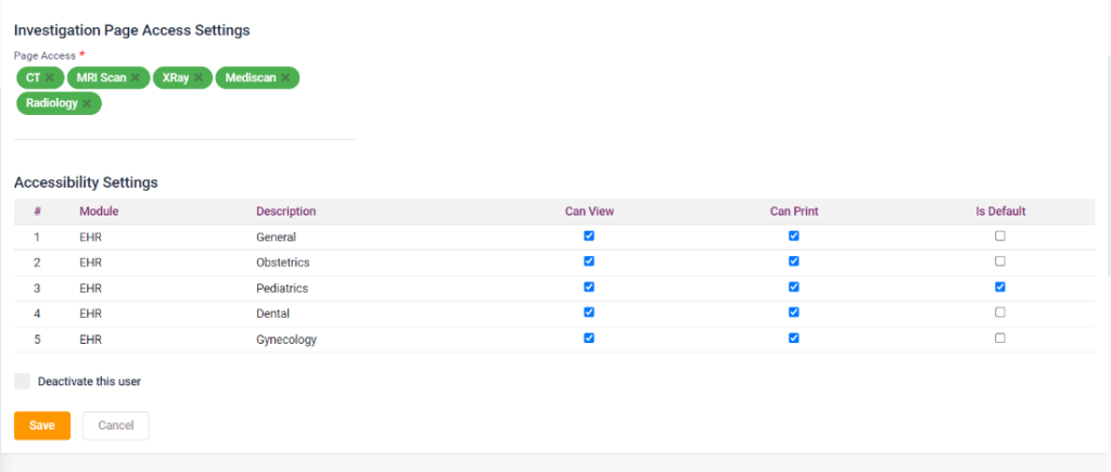 - Page routing as to which page must load after registering a patient can be set up from here by using the second edit icon of a user.