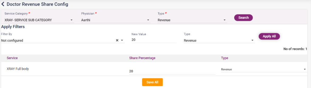 - IP Billing Configuration: Add room rent service in the service master and load that room rent in the service drop down list and select “Yes” only then the “Sent to Billing” button will be visible in the IP billing section.