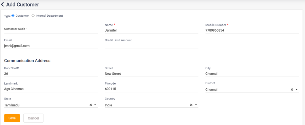 - Under the billing address, check the “Same as Communication address” if the billing address is same as the communication address.