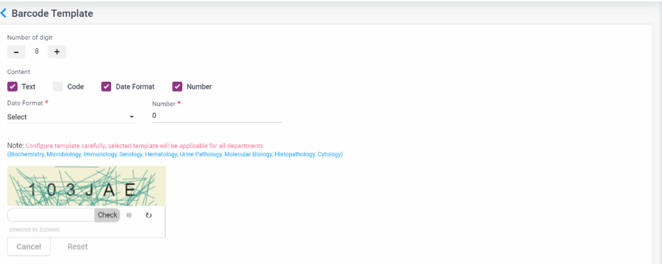 - The select the template for the OPD token, text, date format and number. According to the selected context type the text, date format and number in the respective fields.