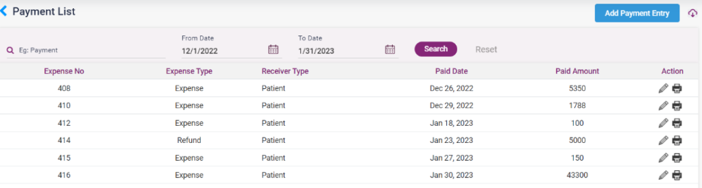 - To add a payment entry, click on the “Add Payment Entry” button, which directs to the “Add Payment” entry page. And enter the following details,