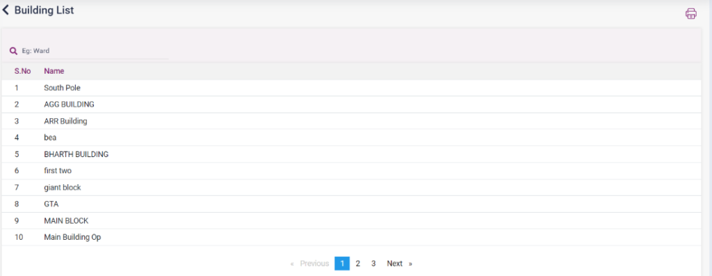 1. Floor List: The list of floor name and their respective building names will be displayed.