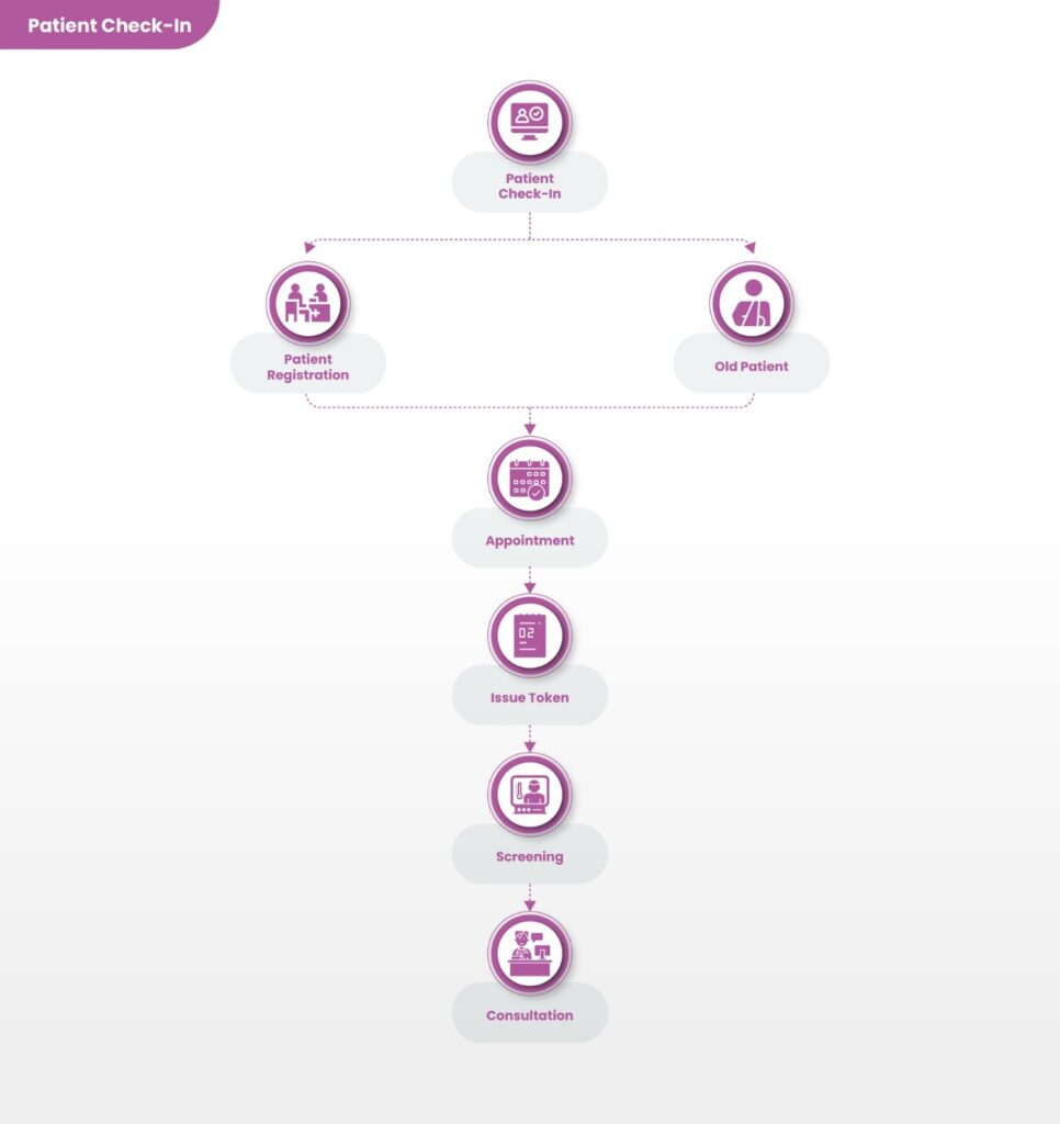 - Once checked in the status will be changed to “Waiting”. After this the token number will be generated.